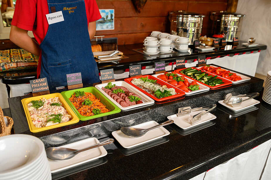 Шведский столУ нас Вы сможете выбрать именно то, что хочется съесть именно сегодня и сейчас!Теперь эта очень популярная среди отдыхающих система питания работает и на базе отдыха «Медвежий угол»!