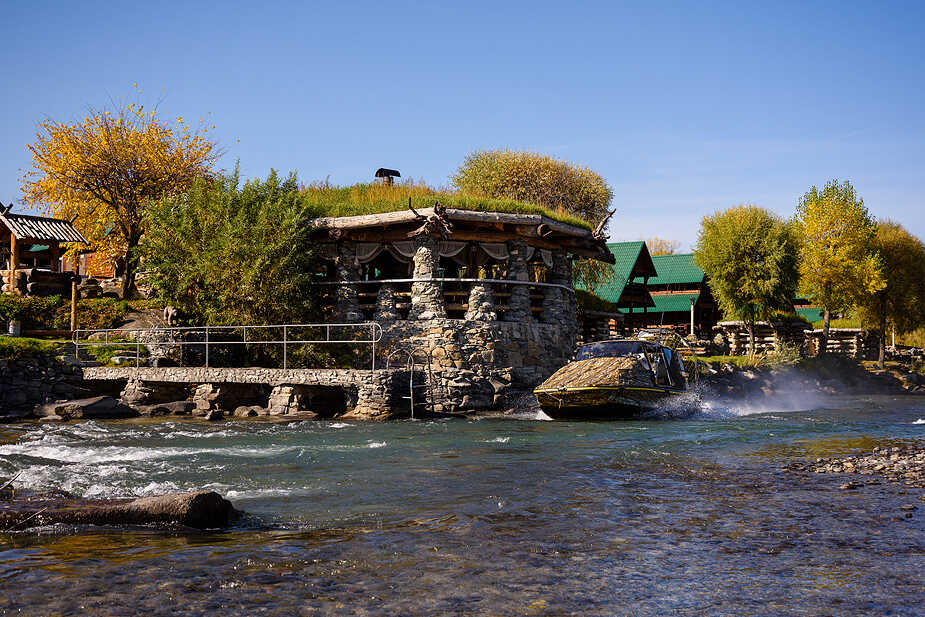 • В тёплое время года заказные блюда подаются в нашем оригинальном и единственном в своём роде на всём побережье кафе-беседке над Катунью.